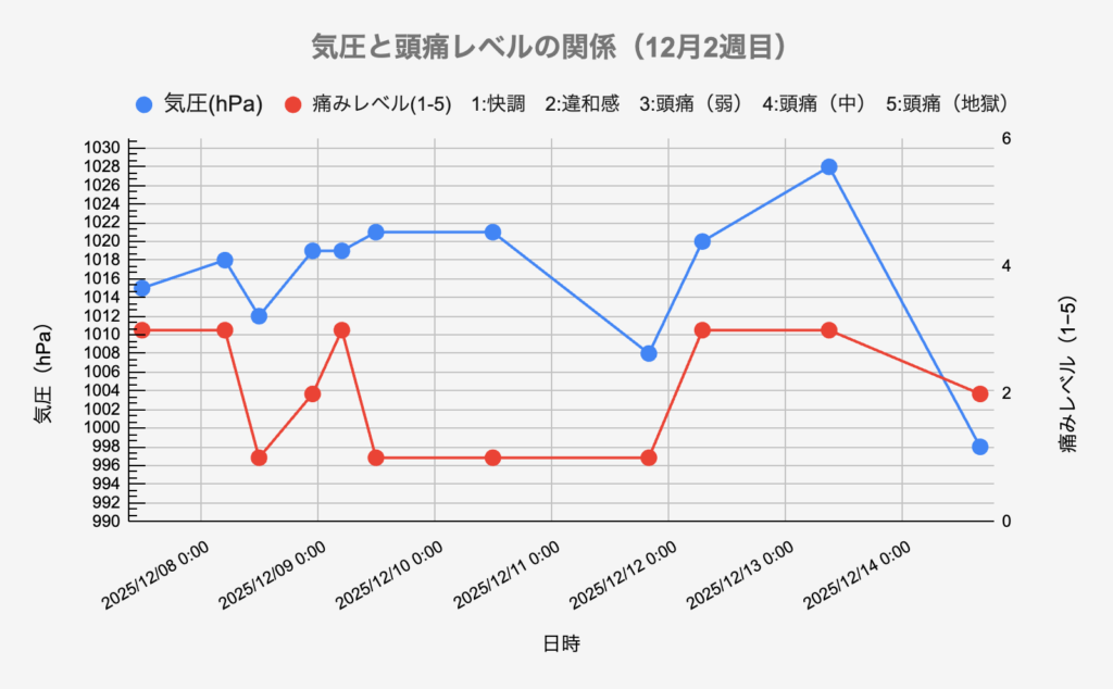 今週の【片頭痛と気圧グラフ】(12月2週目)