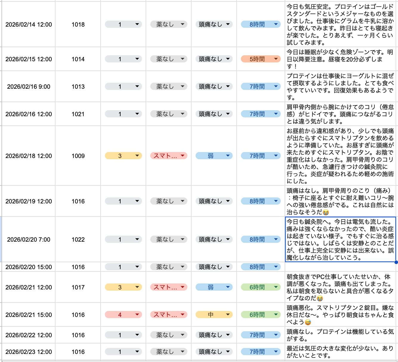 【片頭痛ダイアリー】(2026年2月3週目)